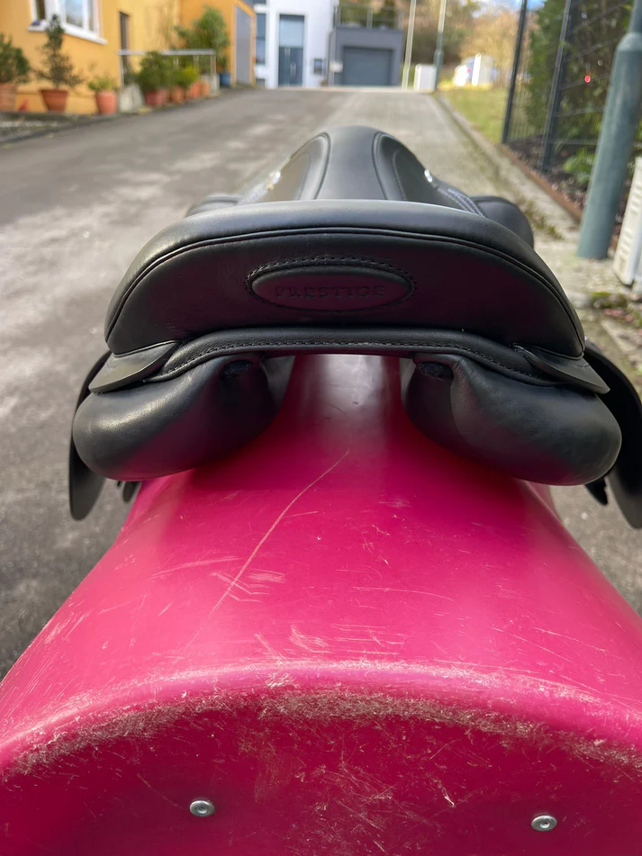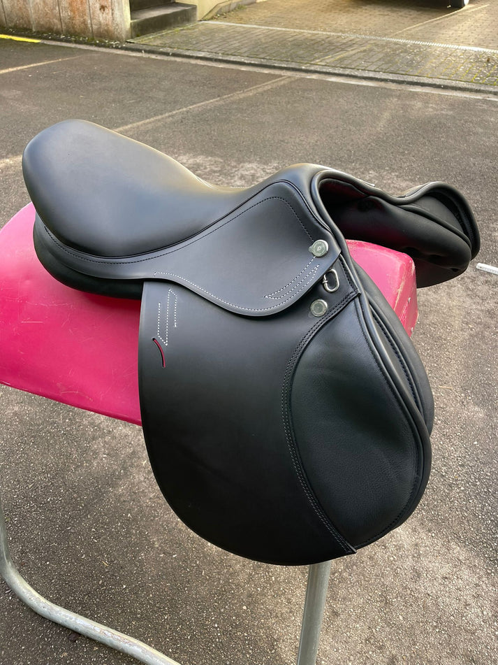 Sattel in modernem Look. Der Sattel verfügt über eine schmale Taille und einen guten Sitz. Die Kissen sind so konstruiert, dass Sie Ihr Gleichgewicht näher am Pferd finden. Die anatomisch geformten Kissen garantieren maximale Bewegungsfreiheit für die Trapezmuskeln.