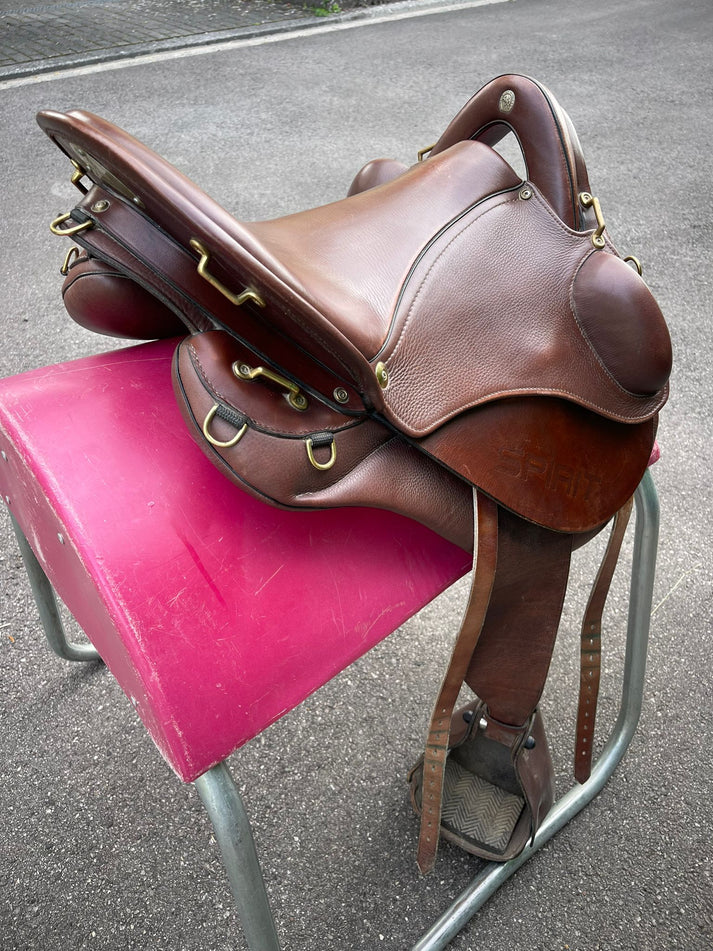 Auf ins Gelände! Der Spirit Distanz ist ein sehr variabler Sattel, der vor allem Freizeitreiter aber auch Wanderreiter begeistern wird. Durch seinen englischen Sattelbaum bietet er viele Einsatzmöglichkeiten.